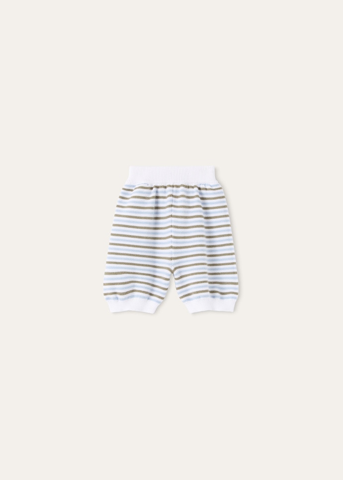 Shaped with a slight balloon line, the Candy trousers are cut from pure Egyptian cotton. The fabric is woven from different yarns, revealing a subtle multistripe pattern that gives the design a distinctive character and feel. It is completed with ribbed waist and hems for a touch of structure.